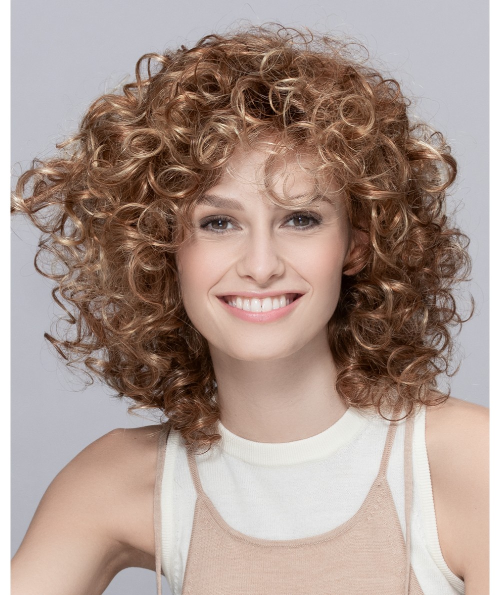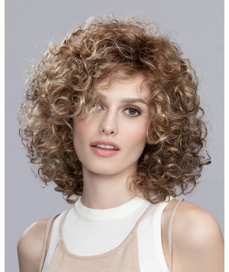 Peluca standard de cabello sintético, tejido a máquina, con tul frontal para una integración perfecta.