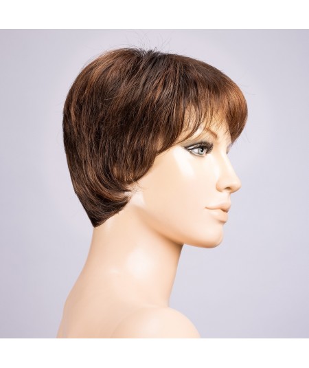 Peluca standard de cabello sintético, con base de monofilamento y tul frontal alargado para conseguir una integración perfecta. Cabello 100% anudado a mano. Para contornos de 54 cm o menores.