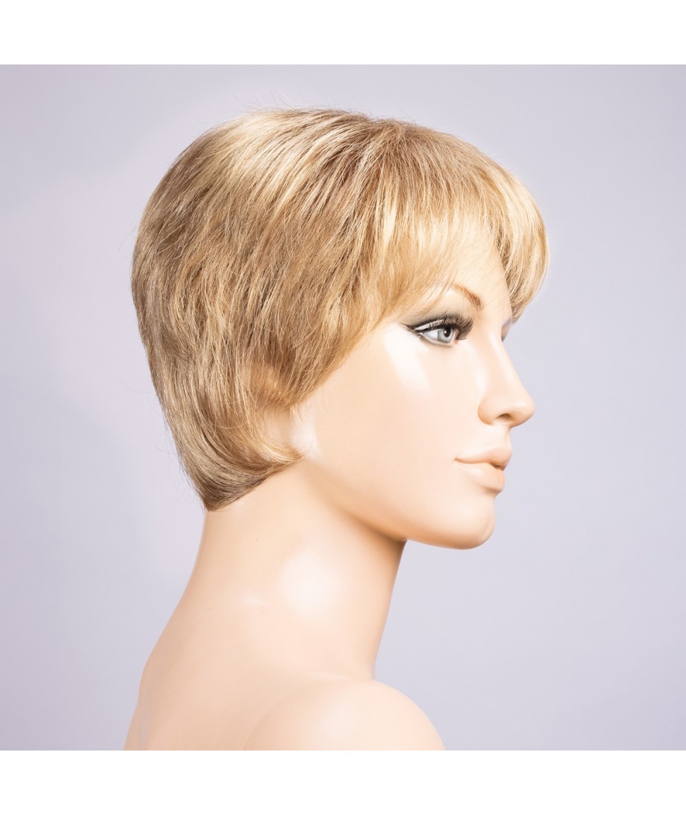 Peluca standard de cabello sintético, con base de monofilamento y tul frontal alargado para conseguir una integración perfecta. Cabello 100% anudado a mano. Para contornos de 54 cm o menores.