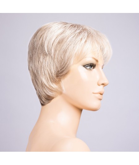Peluca standard de cabello sintético, con base de monofilamento y tul frontal alargado para conseguir una integración perfecta. Cabello 100% anudado a mano. Para contornos de 54 cm o menores.