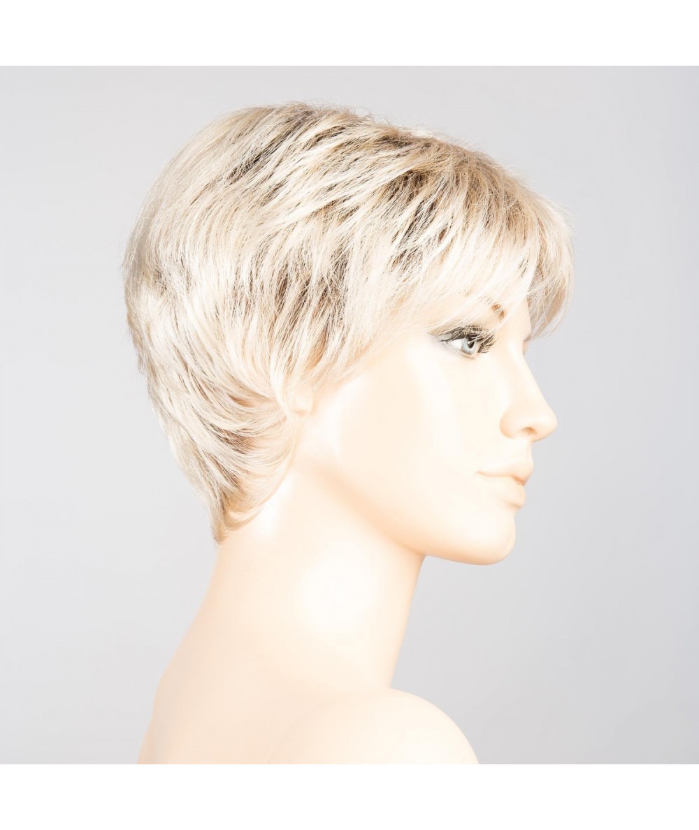 Peluca standard de cabello sintético con monofilamento en la zona de la coronilla y el resto tejido a máquina.
