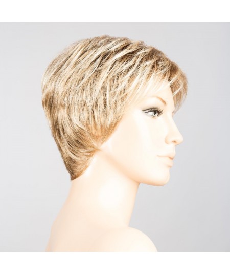 Peluca standard de cabello sintético con monofilamento en la zona de la coronilla y el resto tejido a máquina.