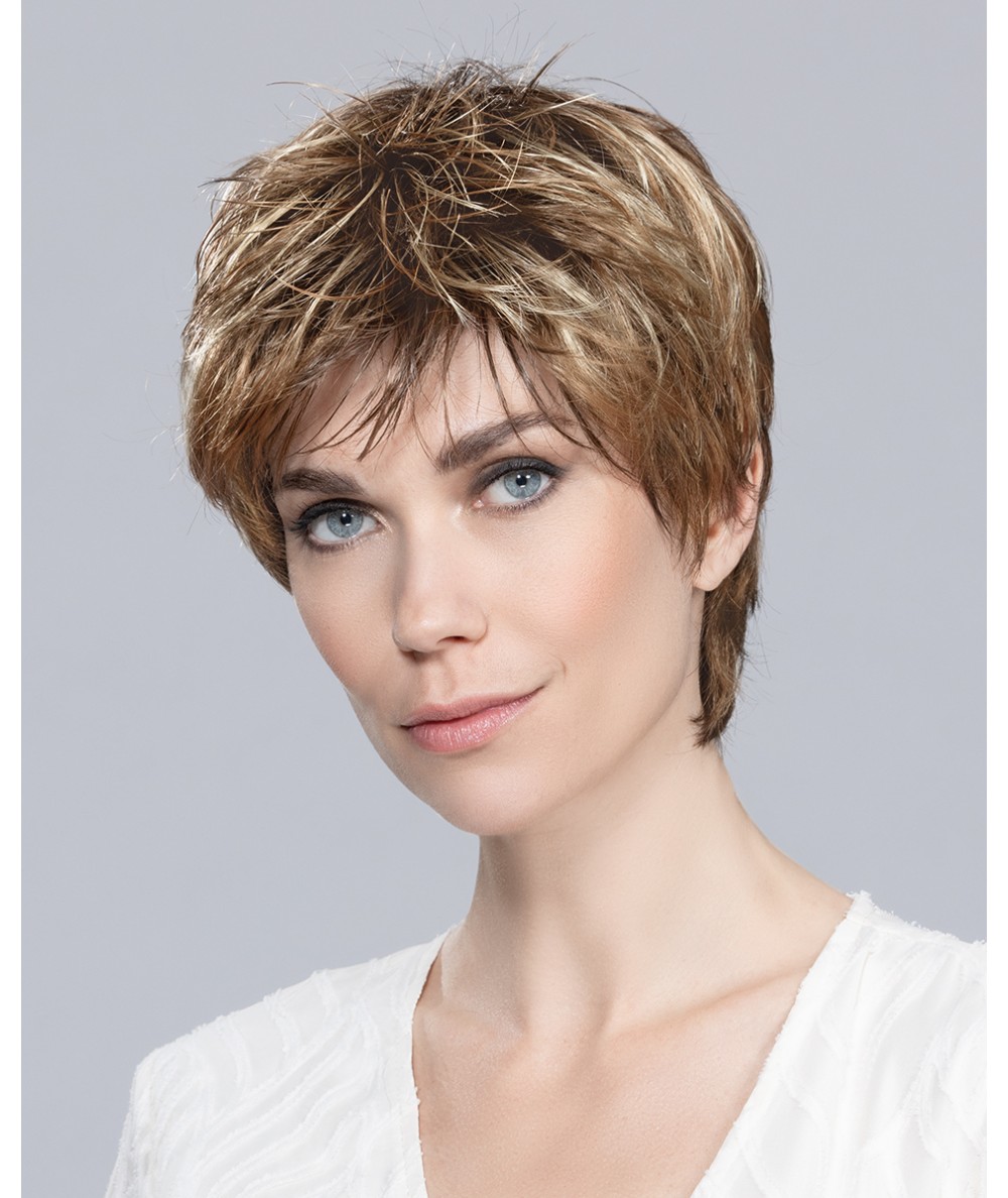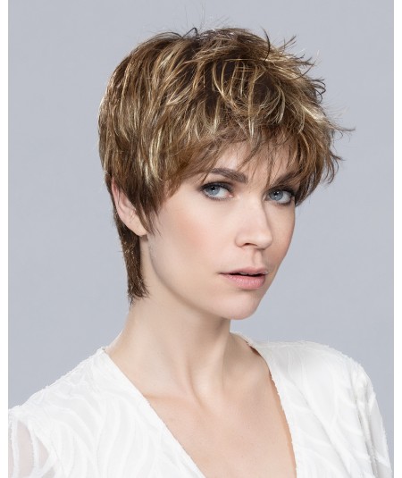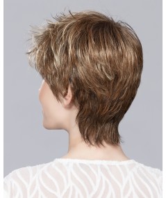 Peluca standard de cabello sintético con la zona superior de monofilamento y el resto tejido a máquina, y tul frontal para conseguir una integración perfecta.