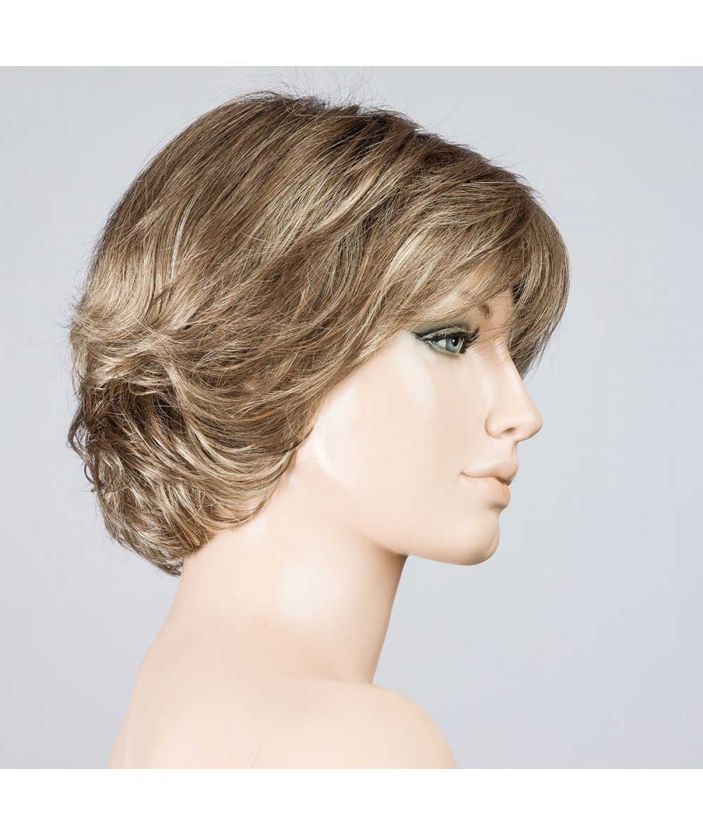 Peluca standard de cabello sintético con la zona superior de monofilamento y el resto tejido a máquina, y tul frontal alargado para conseguir una integración perfecta.
