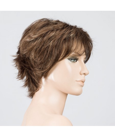 Peluca standard de cabello sintético con la zona superior de monofilamento y el resto tejido a máquina, y tul frontal para conseguir una integración perfecta.