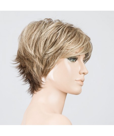Peluca standard de cabello sintético con la zona superior de monofilamento y el resto tejido a máquina, y tul frontal para conseguir una integración perfecta.