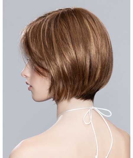 Peluca standard de cabello sintético con monofilamento en la zona de la raya y el resto tejido a máquina.