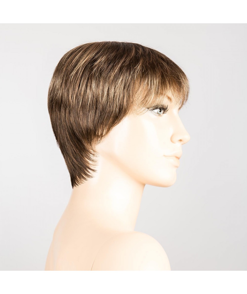 Peluca standard de cabello sintético de alta calidad, confeccionada con monofilamento en la parte superior de la coronilla, y el resto a máquina, con tul frontal para una mayor naturalidad. Para cabezas con contorno de 54 cm o menores.