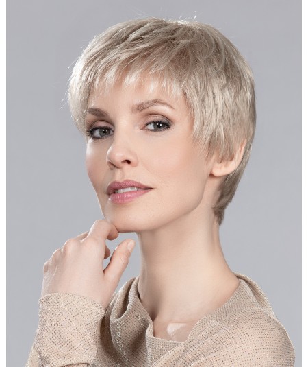 Peluca standard de cabello sintético de alta calidad, confeccionada con monofilamento en la parte superior de la coronilla, y el resto a máquina, con tul frontal para una mayor naturalidad. Para cabezas con contorno de 54 cm o menores.