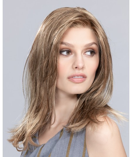 Peluca standard de cabello sintético con monofilamento en la zona de la raya y el resto tejido a máquina. Con tul frontal alargado para conseguir una integración perfecta.