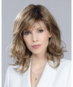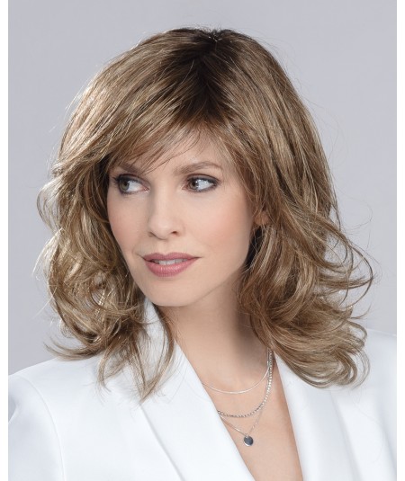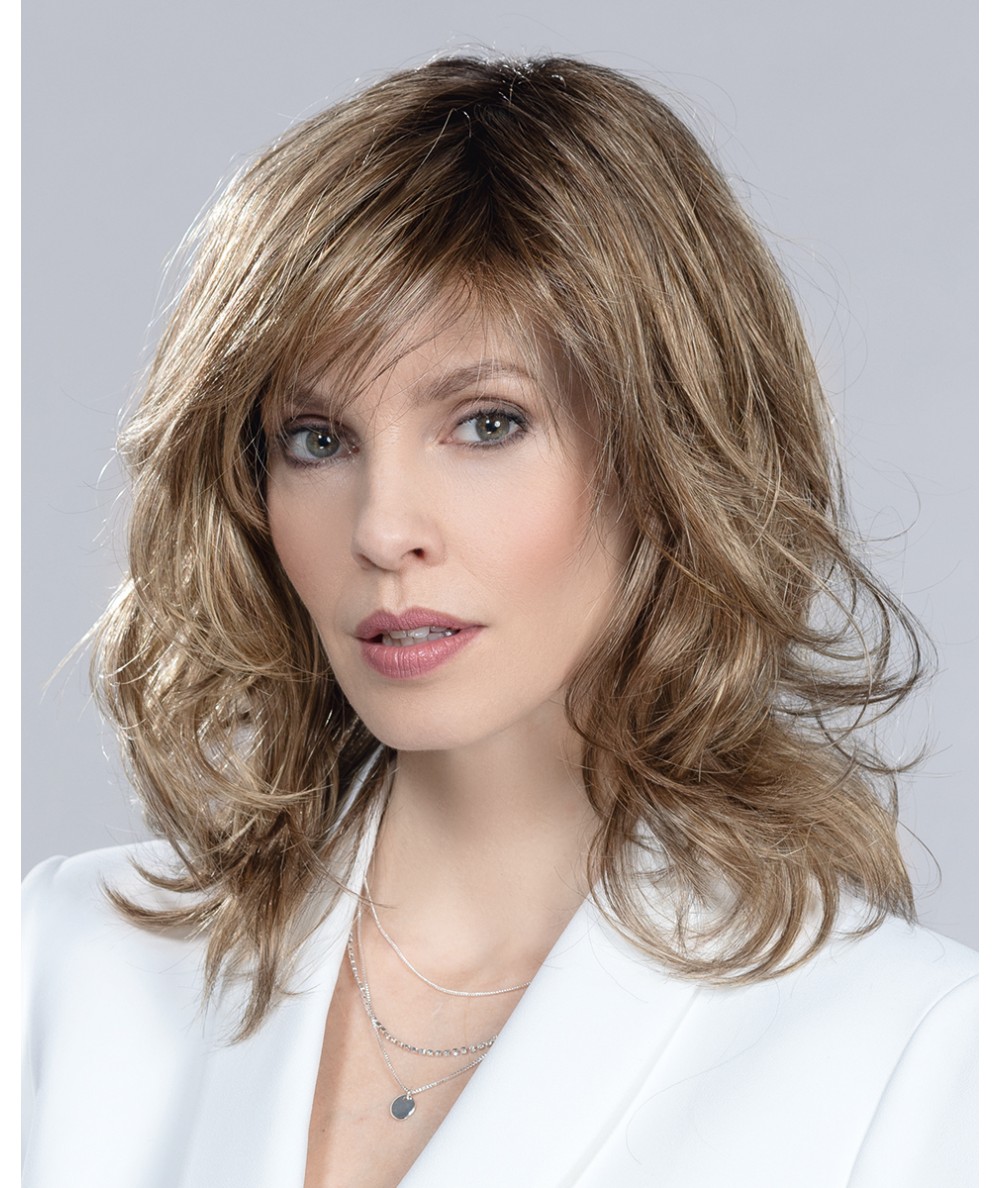 Peluca standard de cabello sintético con monofilamento en la zona de la raya y el resto tejido a máquina.