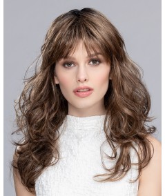 Peluca standard de cabello sintético con monofilamento en la zona de la coronilla y el resto tejido a máquina.