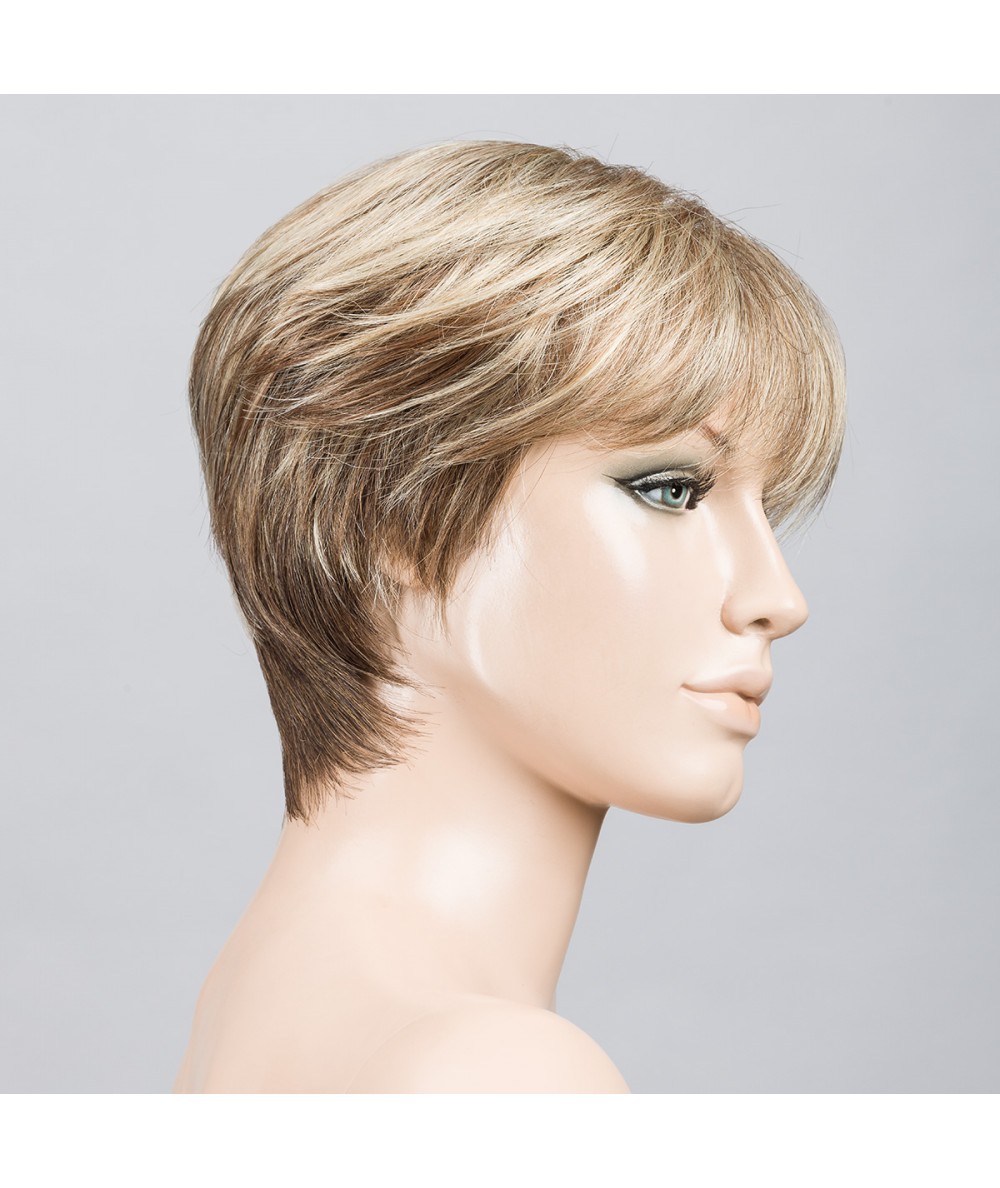 Peluca standard de cabello sintético con monofilamento en la zona de la raya y el resto tejido a máquina.