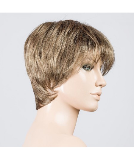 Peluca standard de cabello sintético con monofilamento en la zona de la coronilla y el resto tejido a máquina.