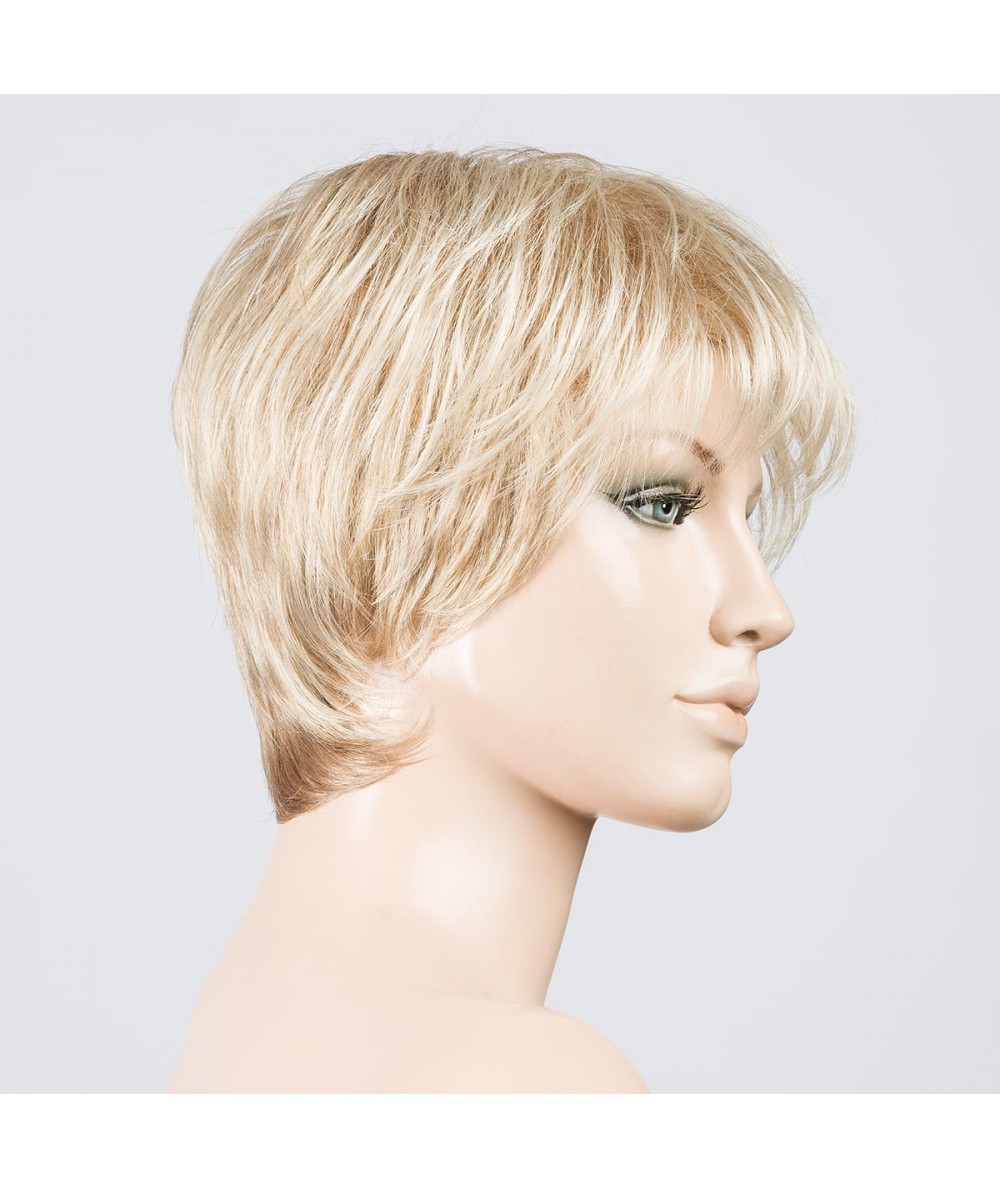 Peluca standard de cabello sintético con monofilamento en la zona de la coronilla y el resto tejido a máquina.