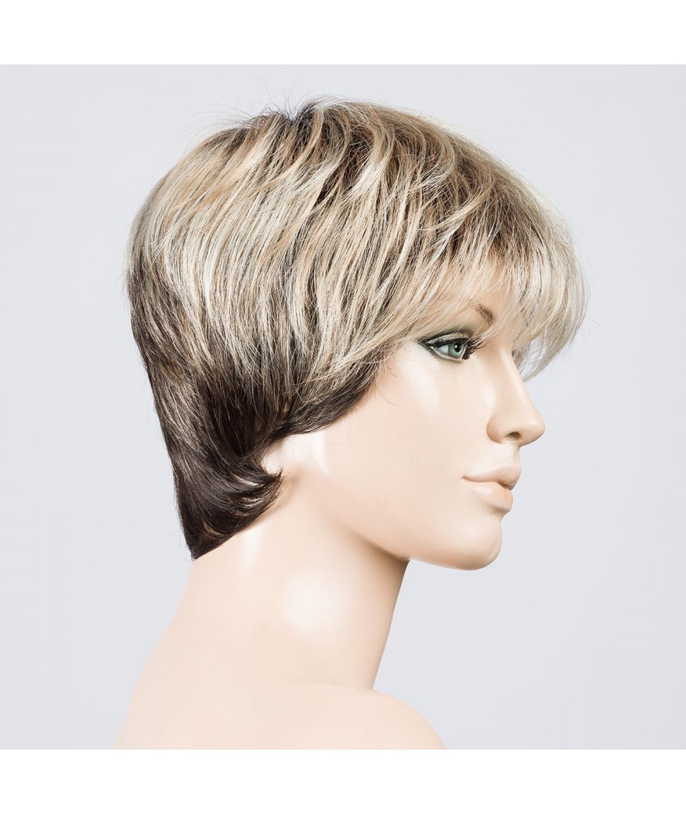 Peluca standard de cabello sintético con monofilamento en la zona de la coronilla y el resto tejido a máquina.
