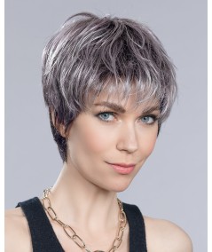 Peluca standard de cabello sintético con monofilamento en la zona de la coronilla y el resto tejido a máquina.