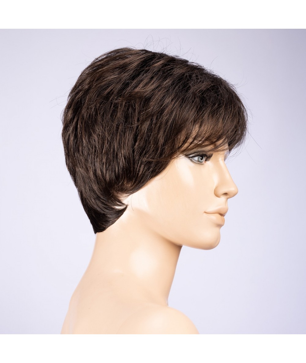 Peluca standard de cabello sintético con monofilamento en la zona de la coronilla y el resto tejido a máquina.