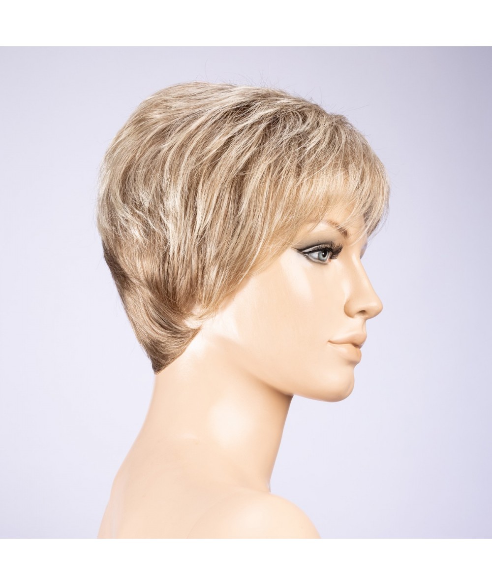 Peluca standard de cabello sintético con monofilamento en la zona de la coronilla y el resto tejido a máquina.