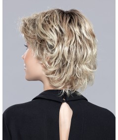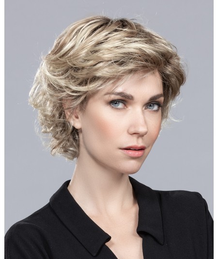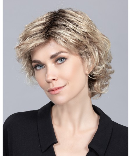 Peluca standard de cabello sintético con la zona superior de monofilamento y el resto tejido a máquina, y tul frontal alargado para conseguir una integración perfecta.