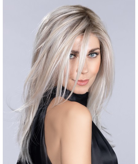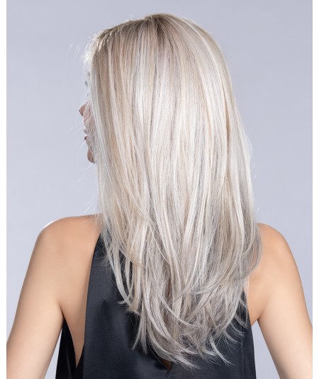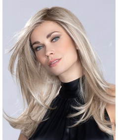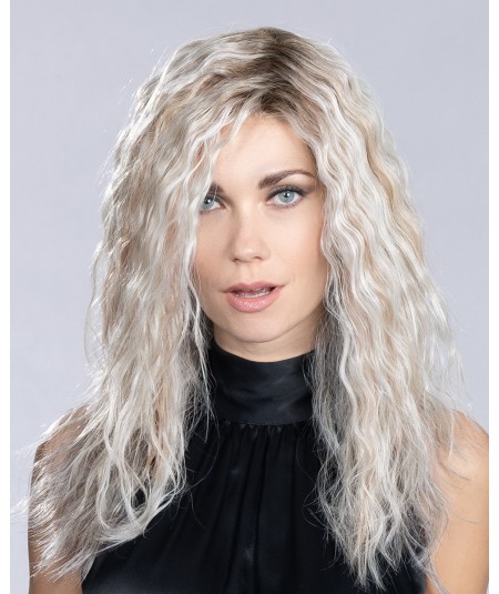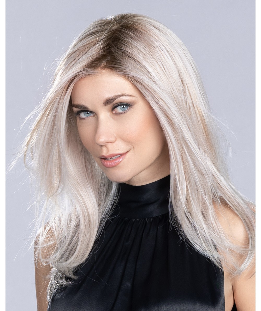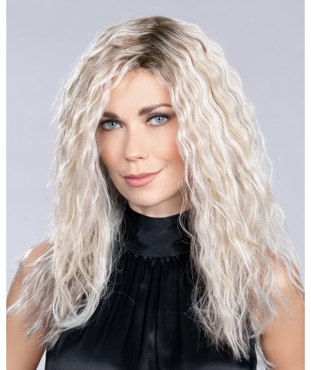 Peluca standard de cabello sintético con la zona superior de monofilamento y el resto tejido a máquina, y tul frontal alargado para conseguir una integración perfecta.