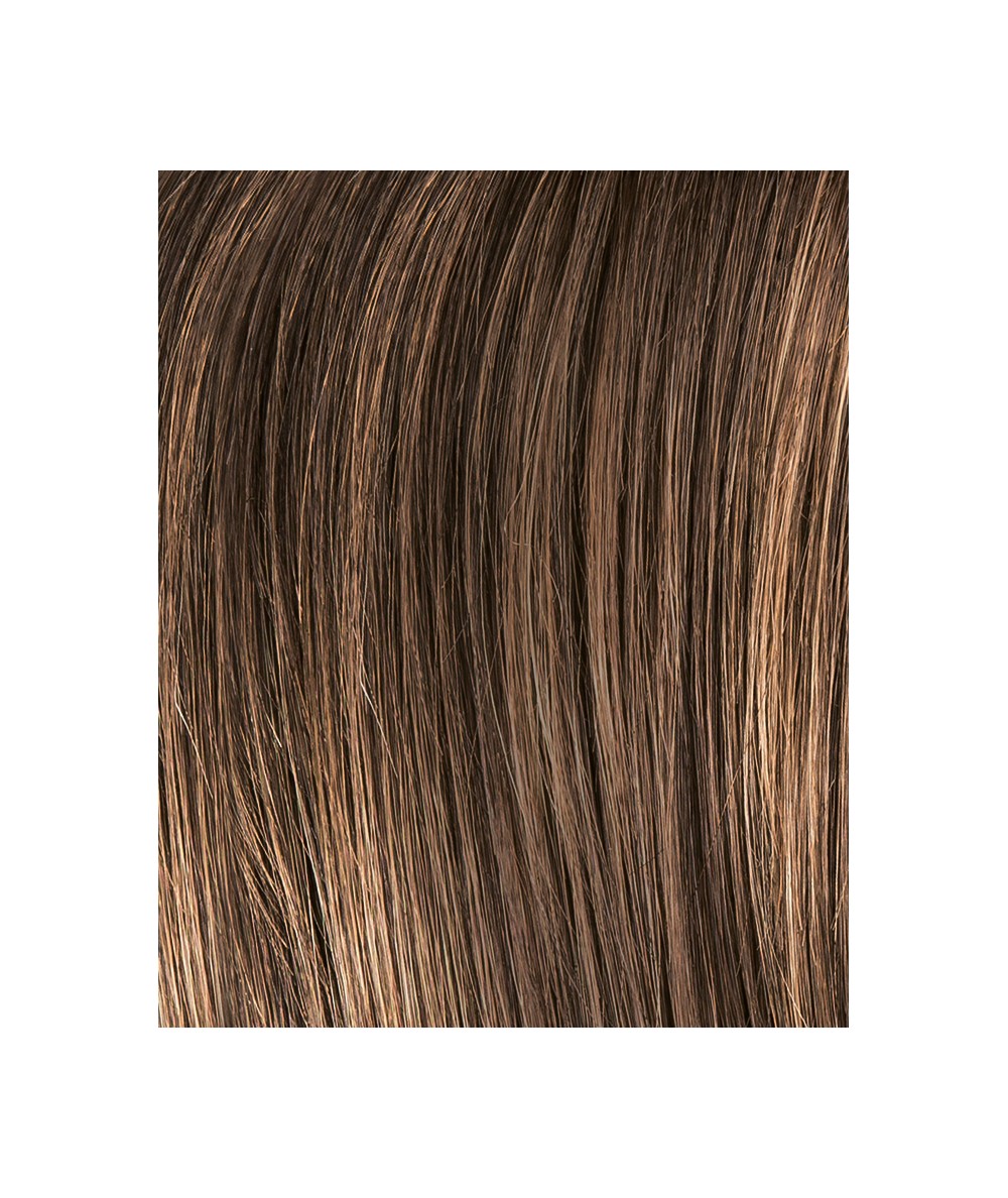 Peluca standard de cabello sintético con monofilamento en la zona de la coronilla, tul frontal mini para una integración natural y el resto tejido a máquina.