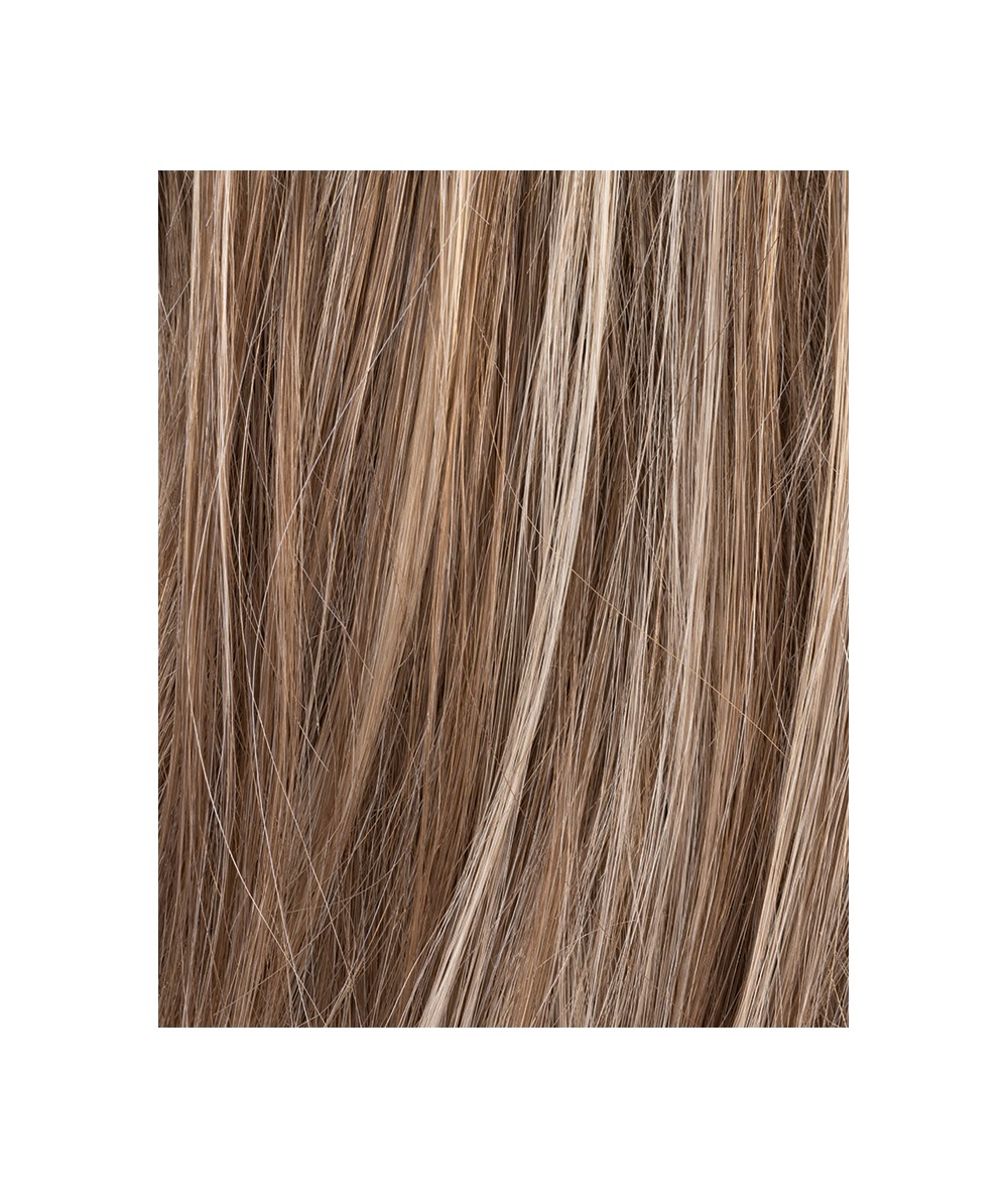 Peluca standard de cabello sintético resistente a alta temperatura, con monofilamento en la zona de la coronilla y el resto tejido a máquina. Con tul frontal alargado para conseguir una integración perfecta.