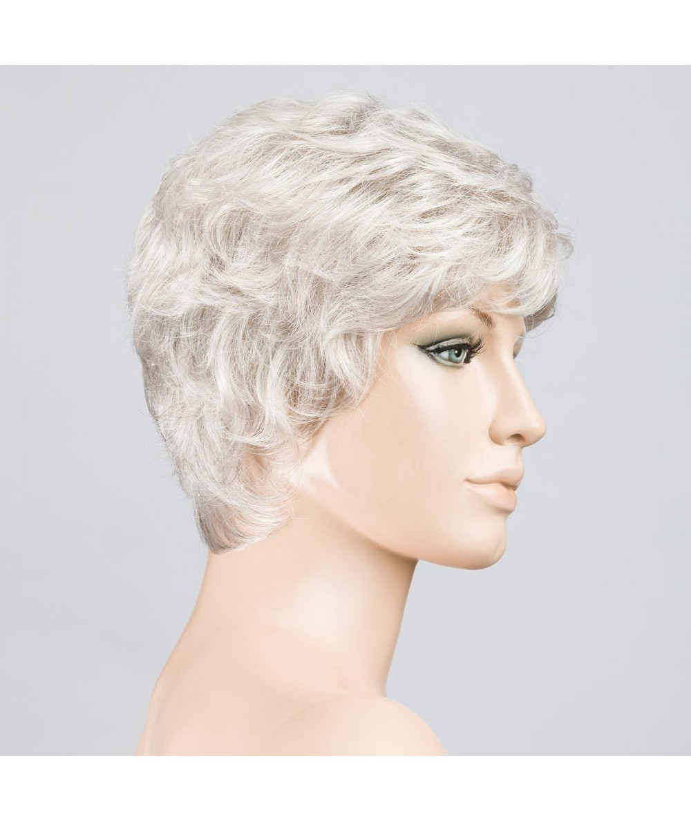 Peluca standard de cabello sintético, tejido a máquina, con tul frontal para una integración perfecta.