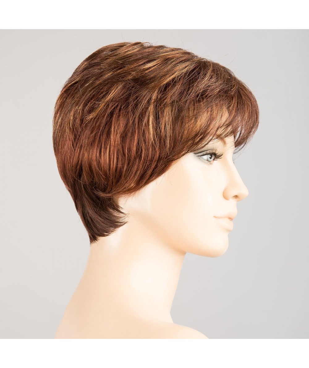 Peluca standard de cabello sintético con monofilamento en la zona de la coronilla y el resto tejido a máquina.