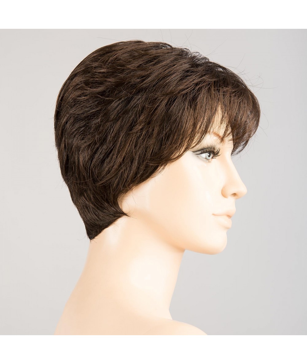 Peluca standard de cabello sintético con monofilamento en la zona de la coronilla y el resto tejido a máquina.
