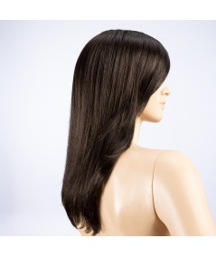 Peluca de cabello sintético de alta calidad. Confeccionada con monofilamento en la coronilla para conseguir la máxima naturalidad. Resto de la confección realizada a máquina.